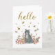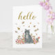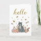 Tarjeta Hola Gato y Flores Ilustración Pensando en ti