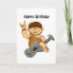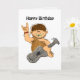 Esta tarjeta divertida tiene un lindo, melenudo, hombre de las cavernas del dibujo animado en la cubierta. Él está sosteniendo (roca!) una guitarra de piedra y está sonriendo, y una mano se aumenta en un saludo.