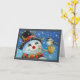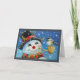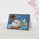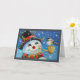 Tarjeta Hombre de nieve de invierno y ave chickadee arte e