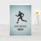 Un corredor con silueta es un motivo divertido en esta tarjeta para los hombres. Perfecto para los chicos adolescentes y para los parientes masculinos, presenta una fresca mirada metalizado borrosa con el tipo corriendo con una mirada grabada. También puede agregar cualquier nombre y cambiar el saludo, además de personalizar el mensaje dentro.
