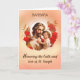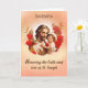 Esta tarjeta de la Fiesta del personalizable de San José te permite añadir un toque personal con un nombre en la parte delantera, haciéndolo más significativo para alguien especial. El diseño presenta a San José con amor sosteniendo al niño Jesús, rodeado de rosales rojas vibrantes, con halos que resaltan su santidad. El lavabo de acuarelas cálidas y el efecto de la pintura aportan un toque sereno y artístico. Perfecto para celebrar el Día de San José, esta carta combina la fe, la belleza y la personalización para crear un profundo sentimiento por honrar esta ocasión especial.