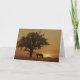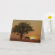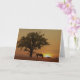 Desee a alguien un hermoso día en su día especial con este caballo de pastoreo al amanecer. Por naturaleza, esta carta de bonito también tiene un gran roble.