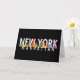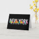 Tarjeta horizonte de Manhattan en Nueva York con palmeras