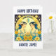 Tarjeta de cumpleaños personalizada Hermosos gemelos Gemini rodeados de estrellas y flores en amarillo y azul. arte celestial de zodiaco bonito.