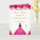 Tarjeta Hot Pink Floral Brunette Hair Girl Sweet Sixteen