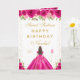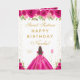 Tarjeta Hot Pink Floral Brunette Hair Girl Sweet Sixteen