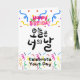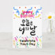 Una tarjeta de cumpleaños animada y colorida que presenta caligrafía coreana que dice “오늘은 너의 날” (Hoy Es Tu Día). Rebosante de energía de celebración y confeti, es perfecta para hacer que el día de alguien sea verdaderamente especial.