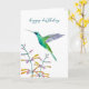 Birthday card featuring a hand-painted watercolor Mexican Violetear hummingbird and flowers. The inside is left empty for your own handwritten message.