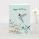 Birthday card featuring a hand-painted Anna's hummingbird and flowers. The inside is left empty for your own handwritten message.