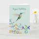 Birthday card featuring a hand-painted hummingbird and flowers. The inside is left empty for your own handwritten message.