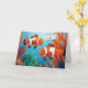 Pareja de peces payasos en algas y coral oceánico con burbuja de habla para humor de 60 años.