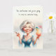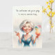 Una elegante anciana con elegante cabello blanco y elegante vestido de noche sostiene un cóctel en una mano y una paja en la otra para el humor de cumpleaños. Se puede cambiar todo el texto.