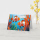 Pareja de peces payasos en algas y coral oceánico con burbuja de habla por tener humor de cumpleaños más viejo.