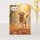 Feliz recuperación dorada corriendo en otoño con hojas para humor de cumpleaños. Se puede cambiar todo el texto.
