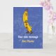 Este plátano magullado parece enojado, y solo espera tu divertida frase o saludo. La fruta animada está sobre un fondo azul desgastado. Hay espacio dentro para un mensaje personalizado adicional, junto con otra divertida gráfica de fruta en la esquina interior.