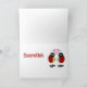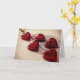 "Szeretlek" - "Te quiero" en húngaro. Regala esta encantadora tarjeta el Día de San Valentín o cuando quieras expresar tu amor. Corazones pequeños en cuerdas yacen en un entorno de hormigón bajo el sol de la mañana, proyectando sombras largas.