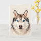 A stunning card featuring a blue eyed Husky dog art design. Blank inside for your own message. Suitable for any occasion.