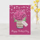Tarjeta de Feliz Día de la Madre con flores hermosas que incluye un ramo de hortensias rosadas y flores de bebé dentro de un frasco de mason con una etiqueta personalizada. Personalice fácilmente esta plantilla para crear una tarjeta única del Día de la Madre. Esta tarjeta se puede personalizar para cualquier ocasión.
