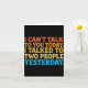 Tarjeta I Can't Talk To You Today Funny Introvert Sarcasti