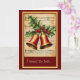 The front of this Holiday greeting card features a vintage image of two gold bells tied together and decorated with green holly leaves and red berries. Behind the bells is a parchment sheet of music. At the bottom is text in gold that says "I heard the bells... "The image is bordered in dark red with a gold and red frame. The inside of the card has the words to the wonderful poem by Henry Wadsworth Longfellow. The right side has several custom text fields, so you may easily change it to say what you'd like.
