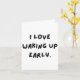 Tarjeta I Love Waking Up Early. Funny White Lie Party