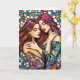 Tarjeta LGBT solo para decir que te amo. Dos hermosas mujeres abrazándose enamoradas. Brillantes y coloridas baldosas de imitación en mosaico ai ilustracion de arte.