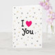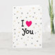 This greeting card features the message “I ❤️ You” right in the middle on a white background. The words “I” and “You” are written in rounded black letters that feel friendly and easy to read. Between them sits a bright fuchsia heart that stands out as the main focus 💘. Around the center message, there are many small hearts that look like quick pen drawings scattered in a loose circle. Some of these little hearts are outlined in black, while others are outlined in golden yellow, adding a warm, festive touch ❤️. The open white space keeps everything clear and puts your attention on the words and the hearts. It’s a simple, sweet way to say how you feel and share Valentine’s Day.
