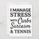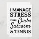 Tarjeta I manage stress with carbs, sarcasm and tennis