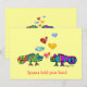 Dos camaleones lagartos de dibujos animados coloridos en colores brillantes están enamorados con grandes corazones. La leyenda dice abajo "Iguana agarra tu mano". Este juego de palabras divertido y caprichoso es para aniversarios o día de San Valentín o cualquier ocasión de amor.