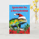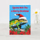 Iguana Deséente una Feliz Navidad, linda imagen de Navidades con una iguana con sombrero de Papá Noel y aferrándose a una rama. Personalizar las áreas de portada y texto interior como desee. Se incluyen las motas de color dorado, las boletus y el follaje tropical. Arte, imagen y verso copyright Shoaff Ballanger Studios, 2023.