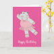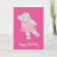 Tarjeta de cumpleaños rosa illusima Ballerina Hippo diseñada por Melanie Jensen. Esta tarjeta de chica lindo también puede ser personalizada para ser una tarjeta Baby Shower para chicas. El texto "Feliz cumpleaños" puede cambiarse a "FELICITACIONES".