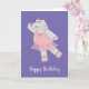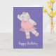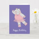 Tarjeta illusima Ballerina Hippo Purple Birthday
