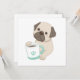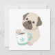 Un lindo ilustracion de un pug sosteniendo una taza de café