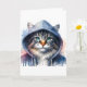 Tarjeta Ilustración de gato tabby con capucha en estilo ac