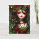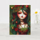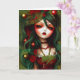 Ilustración de una tarjeta de Navidad de Ricaso - una ilustración de una chica gótica con cabello verde y con acebo y bayas. Un impresionante arte para la temporada de fiestas.