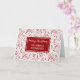Feliz Navidad para la tarjeta de hijastra con un patrón de ilustraciones de vacaciones en rojo y blanco.