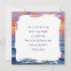 A pretty thinking about you friendship card with impasto style dolphins swimming with a pink, orange and purple sunset over the ocean on the front and a nice thinking about you poem on the inside wishing someone a peaceful day.