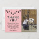 Cute Paw imprime Pink Birthday Gracias tarjeta de fotos para niños. Cute foto cumpleaños tarjeta de agradecimiento con huellas de pata, mensaje de agradecimiento, una plantilla de foto y el nombre de un niño. El fondo es rosa. Inserta su foto en la plantilla y personaliza con su nombre. Cambie o deje el mensaje de agradecimiento.