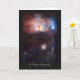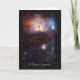 Serie Galaxias, Estrellas y Nebulosas Una fantástica carta de saludo que muestra la espectacular región de formación de estrellas conocida como la Nebulosa Llama, o NGC 2024, en la constelación de Orión (el Cazador) y sus alrededores. En vista de este objeto evocador a la luz visible, el núcleo de la nebulosa está completamente oculto tras el polvo oscuro, pero en esta vista VISTA, tomada a la luz infrarroja, se revela el cúmulo de estrellas muy jóvenes en el corazón del objeto. La vista VISTA de campo amplio también incluye el resplandor de la nebulosa de reflexión NGC 2023, justo debajo del centro, y el contorno fantasmal de la nebulosa Cabeza de Caballo (Barnard 33) hacia la derecha inferior. La estrella azul brillante hacia la derecha es una de las tres estrellas brillantes que forman el Cinturón de Orión. La imagen fue creada a partir de imágenes VISTA tomadas a través de filtros J, H y Ks en la parte casi infrarroja del espectro. La imagen muestra aproximadamente la mitad del área del campo VISTA completo y es de aproximadamente 40 x 50 minutos de extensión. El tiempo total de exposición fue de 14 minutos y fue el primero en ser publicado de VISTA, el telescopio de reconocimiento más grande del mundo. Código de imagen: hfflmnb ESO/J. Reproducido bajo licencia Creative Commons Attribution 3.0 Unported.