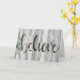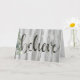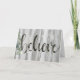 Inspiración de granja III de Jennifer Paxton Parker. "Believe" está escrito en un bello guión junto a la vegetación y presenta un fondo de madera.