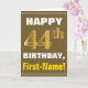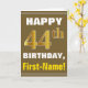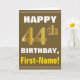 Las características del este de felicitación diseño cumpleaños-temáticas simples de la tarjeta un deseo caliente del cumpleaños tienen gusto del "44.o CUMPLEAÑOS FELIZ, Primero-Nombre!" en el frente, en texto intrépido en un fondo de color marrón. El número del cumpleaños tiene un falso/una imitación oro-como mirada del colorante. El nombre en el frente puede ser personalizado. Las características interiores un mensaje del cumpleaños que puede ser modificado para requisitos particulares. Una tarjeta de felicitación como esto podría ser una manera de la diversión de entregar deseos del cumpleaños alguien que está celebrando su cuarto cumpleaños cuarenta. [~Z0000281]