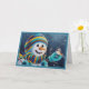 Tarjeta Invierno Snowman alimenta el arte acuático de las