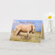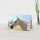 Un hermoso caballo de palomino se alza en un pastizal barrido por el viento. Otra vista del caballo está en la parte trasera de la tarjeta. Puede personalizar esta tarjeta cambiando el nombre.