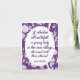 Esta cita de Jane Austen sobre una dama que busca aventura está en un fondo de tela morada. En el interior hay peonías púrpura que son la inversa de las de la cubierta frontal. Puedes escribir tu propio mensaje para alguien que vaya a la universidad o en un viaje.