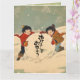 Tarjeta Japanese children rolling big snow ball