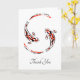 Gracias tarjeta de felicitación con un par de peces koi negros y rojos nadando y dando vueltas unos a otros. Mensaje personalizado en el interior.