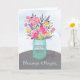 Cuando una hermana religiosa, monja, no se siente bien, este bonito ramo de flores la alegrará. Flores de aspecto acuarela en rosa brillante, púrpura y amarillo dorado son alegres en un florero de frasco de mason sentado en una mesa. ¡Hágale saber que está orando por ella para que se mejore y se sienta mejor pronto!