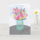 Desea bendiciones a una pareja especial en su aniversario. Este bonito florero de frasco de mason contiene un ramo mixto de flores con aspecto de acuarela en una mesa a rayas. Tarjeta religiosa bonita para decir feliz aniversario.