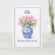 Celebra con el encanto atemporal del estilo Grandmillennial. Esta elegante tarjeta de cumpleaños presenta un clásico jarrón de jengibre Chinoiserie azul y blanco lleno de tulipanes suaves de color rosa. Con su tradicional borde escalonado y tipografía serif sofisticada, es la elección perfecta para una madre, hermana o amiga que ama el estilo clásico y elegante. Totalmente personalizable: agrega un monograma o nombre en la parte frontal y un mensaje personalizado en el interior a través de la herramienta de diseño de Zazzle.