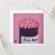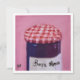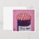 Huella de pintura al óleo de un frasco de gelatina con fondo rosado.